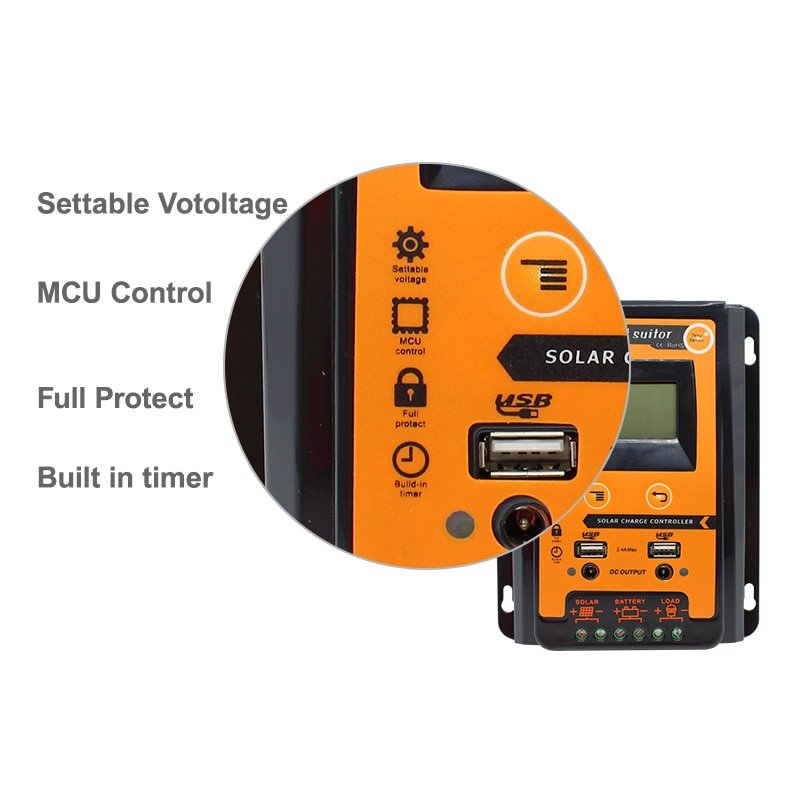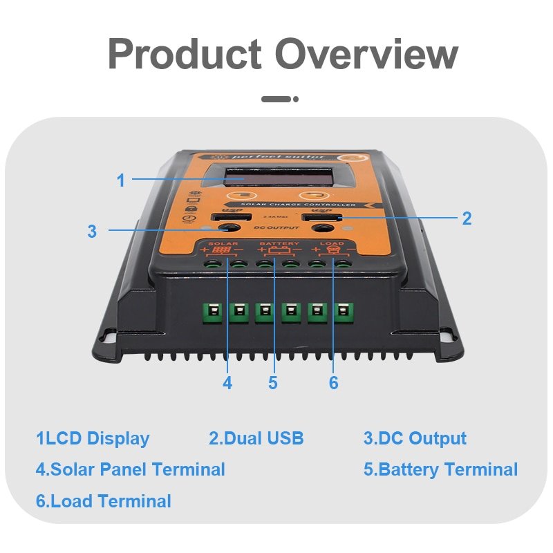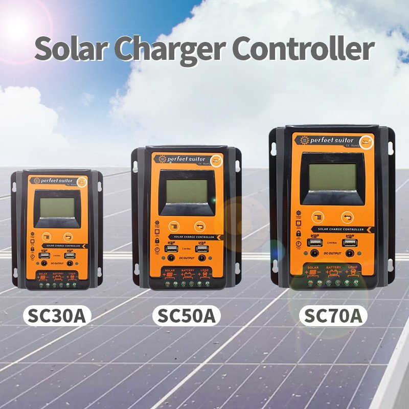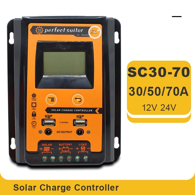 PWM Solar Charge Controller Dual USB with LCD 30A, 50A, 70A | 12V / 24V Dual USB | IP32 PV