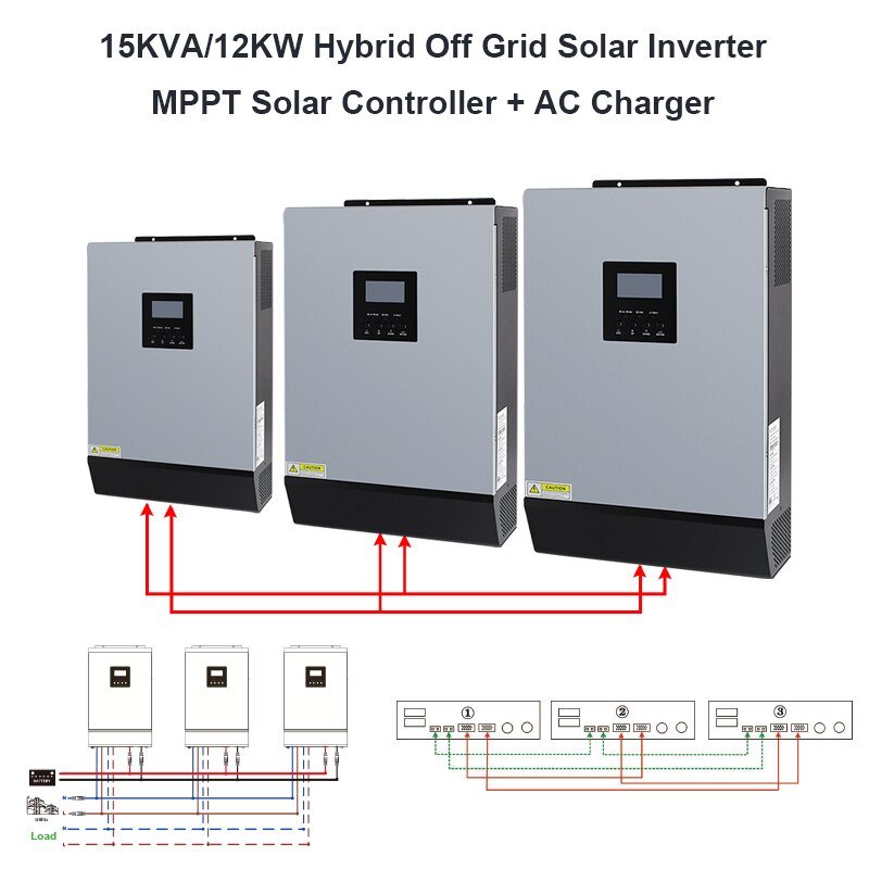 15KVA 48V Off Grid Parallel Hybrid Inverter Pure Sine Wave 220V 3 Phase 380V 60A MPPT Charger Controller 50/60HZ