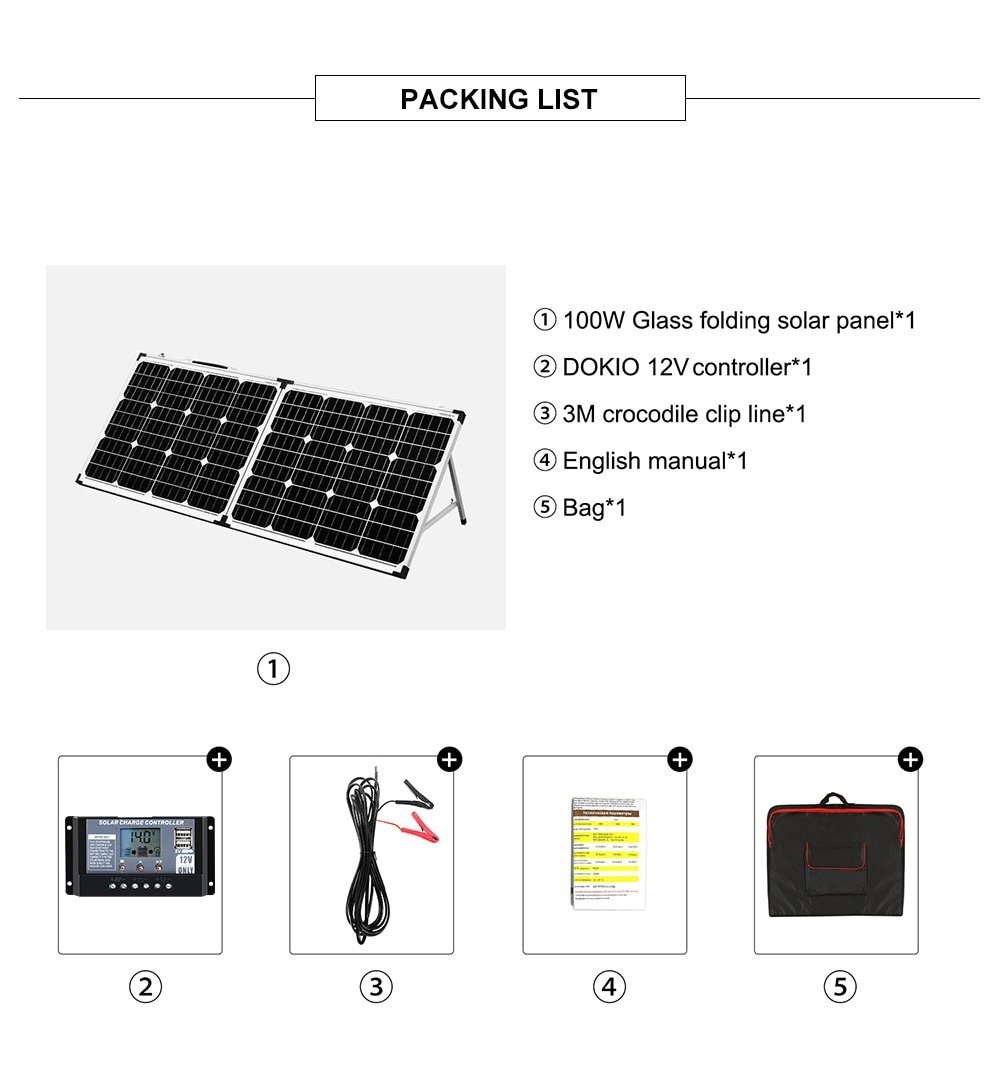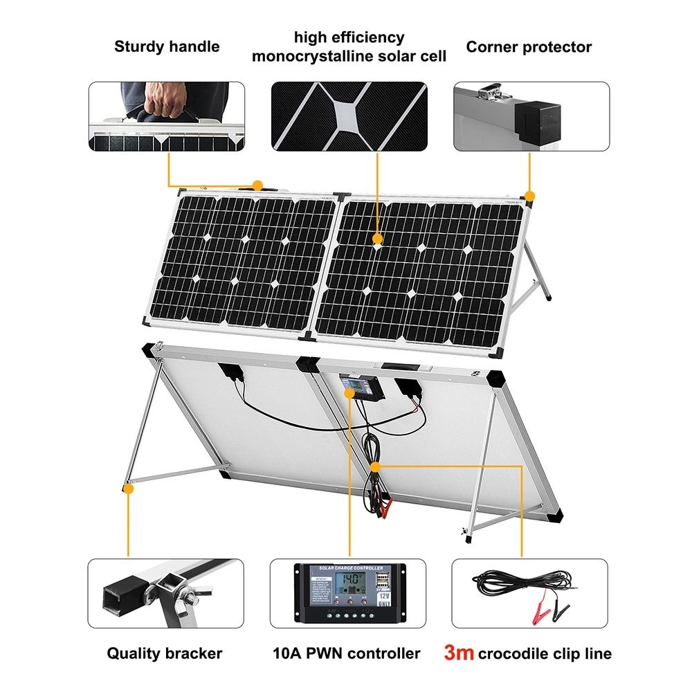 Foldable Solar Panel Kit with 10A/20A 12V Controller Cables – 100W 160W 200W