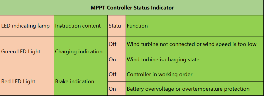 • This controller has basic control and protect functions, and provide low voltage charging function. the battery could be charged under low speed wind. Pls click below pictures to get the specification of MPPT wind controller: