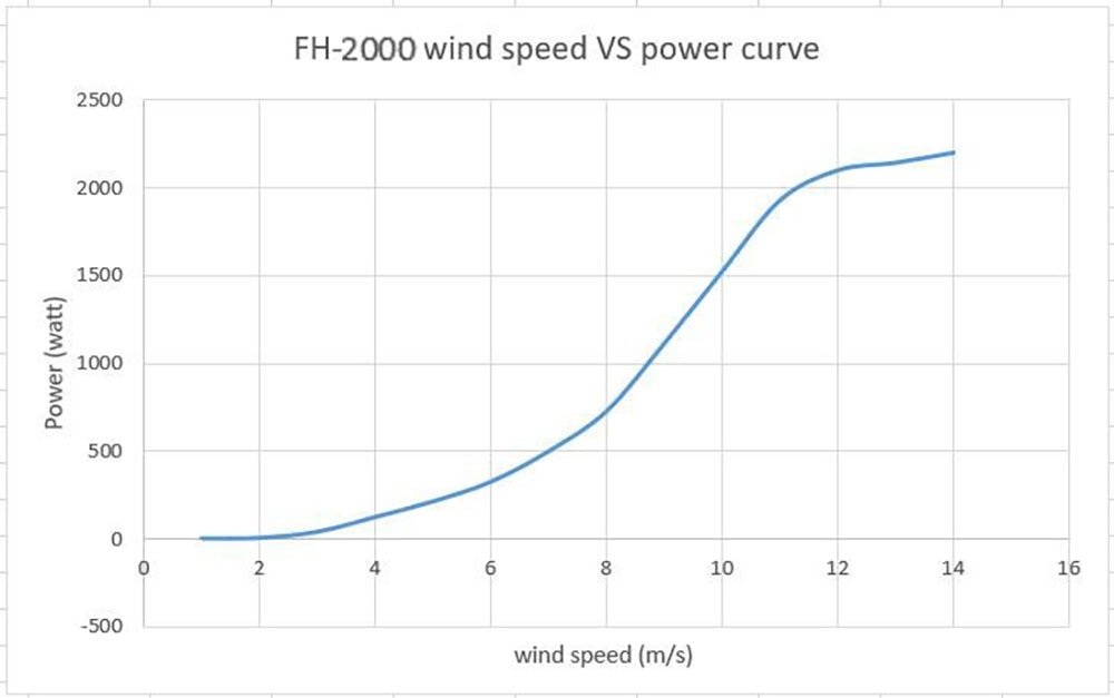 - Power generation curve characteristics: Start wind speed is lower than other types of wind turbines, the power generation increasing rate is relatively gentle, so between 5 to 8 meters wind speed range, it could produce 10% to 30% power than other types of wind turbines.